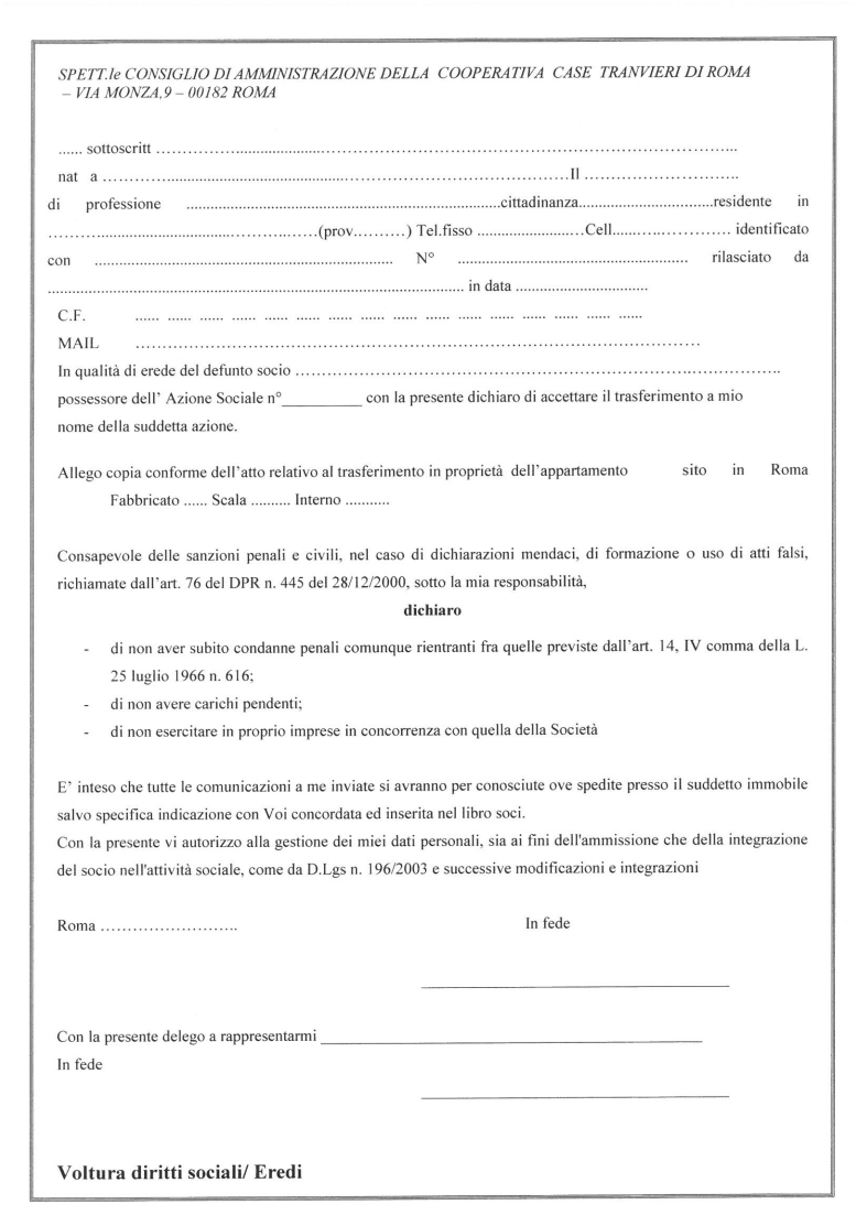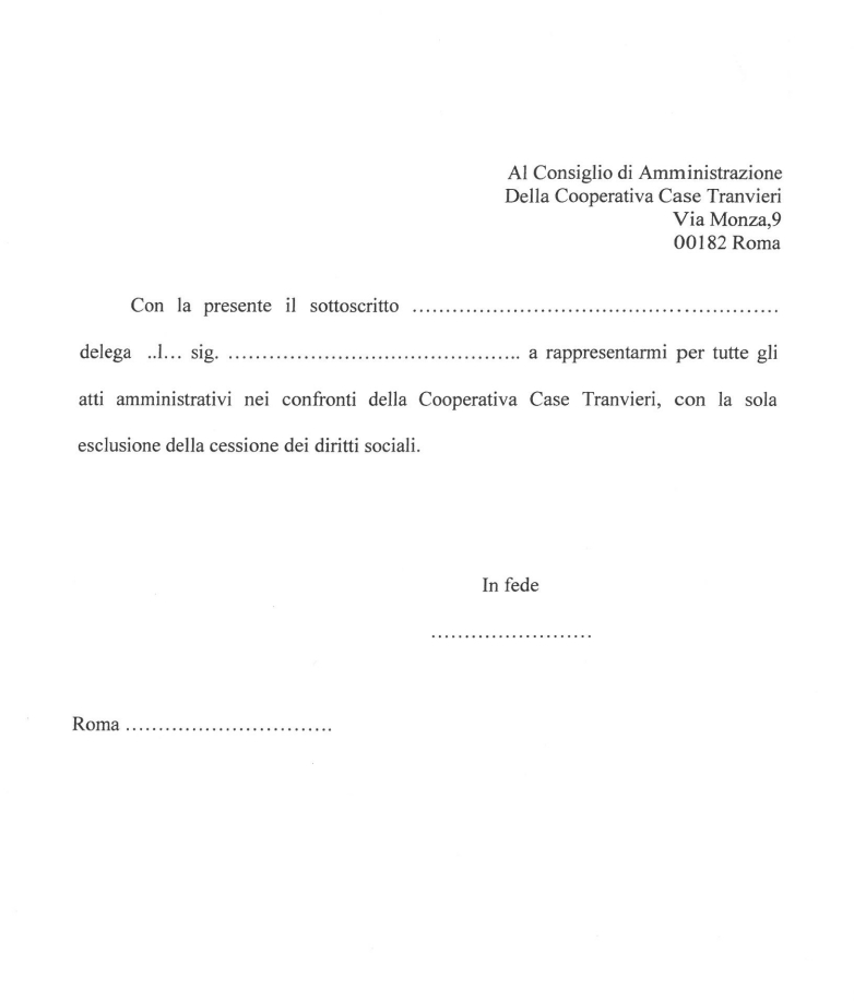 Delega di rappresentare altro Socio agli atti Amministrativi.